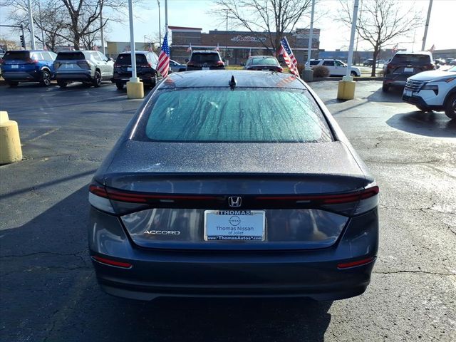 ** Alloy Wheels / Premium Wheels, ** Apple CarPlay/Android Auto, ** Backup Camera, ** Blind Spot Monitor, ** Bluetooth, Hands Free, ** Cruise Control, ** Heated Seats, ** Heated Steering Wheel, ** Keyless Entry, ** Keyless Start, ** LED Headlights, ** Navigation System, ** Premium Sound System / Premium Audio, ** Remote Start, ** Satellite Radio, ** Stability Control, ** Steering Wheel Controls, 4 Speakers, 4-Wheel Disc Brakes, ABS brakes, Adaptive Cruise Control: Adaptive Cruise Control (ACC) with Low-Speed Follow, Air Conditioning, Alloy wheels, AM/FM radio, Apple CarPlay/Android Auto, Auto High-beam Headlights, Automatic temperature control, Beautiful both inside and out!, Brake assist, Bumpers: body-color, Compass, Delay-off headlights, Driver door bin, Driver vanity mirror, Dual front impact airbags, Dual front side impact airbags, Electronic Stability Control, Emergency communication system: HondaLink Assist, Exterior Parking Camera Rear, Fabric Seat Trim, Four wheel independent suspension, Front anti-roll bar, Front Bucket Seats, Front Center Armrest, Front reading lights, Fully automatic headlights, Illuminated entry, Knee airbag, Lane departure: Lane Keeping Assist System (LKAS) active, Local trade-in, Low tire pressure warning, Occupant sensing airbag, Outside temperature display, Overhead airbag, Overhead console, Panic alarm, Passenger door bin, Passenger vanity mirror, Power door mirrors, Power steering, Power windows, Radio data system, Radio: 160-Watt AM/FM Audio System, Rear anti-roll bar, Rear reading lights, Rear seat center armrest, Rear side impact airbag, Rear window defroster, Remote keyless entry, Security system, Speed control, Speed-sensing steering, Speed-Sensitive Wipers, Steering wheel mounted audio controls, Tachometer, Telescoping steering wheel, Tilt steering wheel, Traction control, Trip computer, Variably intermittent wipers, Wheels: 17" x 7.5" Blade Silver.Clean CARFAX. CARFAX One-Owner. Meteorite Gray Metallic 2023 Honda Accord 4D Sedan LX 1.5T I4 DOHC 16V Turbocharged VTEC 29/37 City/Highway MPG CVT FWDThis Vehicle is located at 1427 North Larkin Avenue, Joliet, IL 60435.Over 200 pre-owned vehicles available! Call us at (779.242.1055) 80,000 Warranty on all Nissan Certified vehicles!