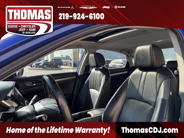 This wholesale unit is as-is/as-shown and requires extensive mechanical work. We are giving the public the opportunity to purchase this vehicle before it gets sent to auction. There is NO WARRANTY, NO GUARANTEE, and NO RETURN POLICY. This vehicle is priced accordingly. Any and all repairs will be at the buyers expense.2016 Blue Honda Civic 31/42 City/Highway MPGOne Owner, Power moonroof, Leather, 17" Alloy Wheels, 8 Speakers, Alloy wheels, Apple CarPlay/Android Auto, Auto-dimming Rear-View mirror, Automatic temperature control, Exterior Parking Camera Rear, Front dual zone A/C, Front fog lights, Fully automatic headlights, Heated door mirrors, Heated front seats, Leather Seat Trim, Leather Shift Knob, Power door mirrors, Power driver seat, Radio: 180-Watt AM/FM/HD/SiriusXM Audio System, Security system, Speed control, Spoiler.Come see the difference at Thomas Chrysler Dodge Jeep Ram of Highland, IN. Our number one goal is your complete satisfaction! Call us at 219-924-6100.