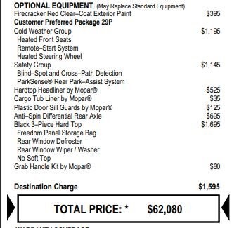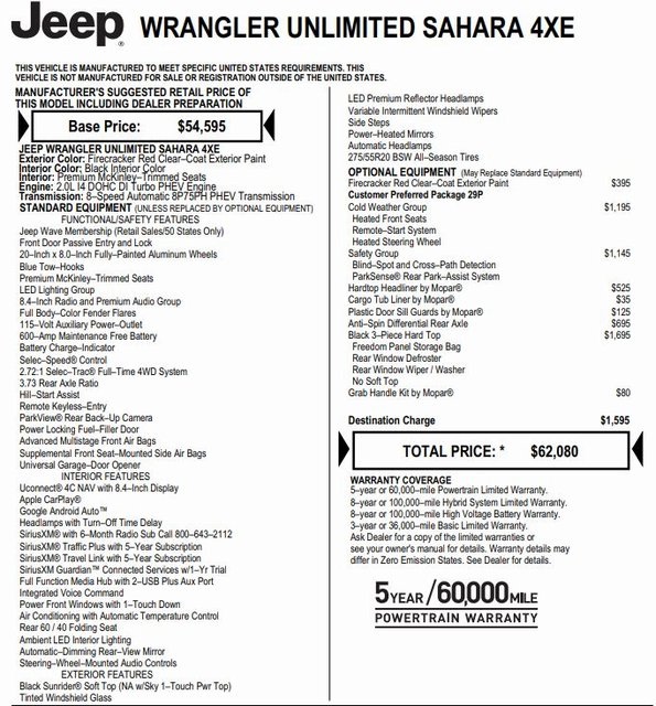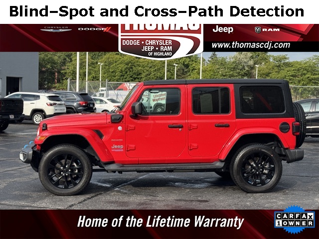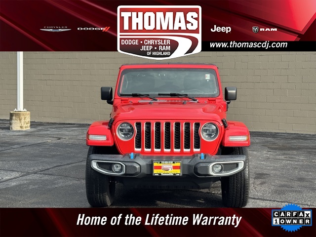2022 Firecracker Red Clearcoat Jeep WranglerSo Clean it is on our SHOWROOM FLOOR!!, One Owner, AntiSpin Differential Rear Axle, Navigation System, ORIGINAL MSRP $62,080, Clean CarFax History Report, Alloy wheels, Apple CarPlay/Android Auto, Auto-dimming Rear-View mirror, Blind Spot & Cross Path Detection, Body Color 3-Piece Hard Top, Cold Weather Group, Compass, Electronic Stability Control, Freedom Panel Storage Bag, Front dual zone A/C, Front fog lights, Fully automatic headlights, Heated door mirrors, Heated Front Seats, Heated Steering Wheel, Leather Shift Knob, Leather steering wheel, ParkSense Rear Park Assist System, ParkView Rear Back-Up Camera, Power door mirrors, Premium McKinley Trimmed Seats, Rear Window Defroster, Rear Window Wiper/Washer, Remote keyless entry, Remote Start System, Safety Group, Security system, Speed control, Traction control, Wheels: 20" x 8" Fully Painted Aluminum.LIFETIME WARRANTY FOREVER! On ALL eligible new & used vehicles - $0 Deductible Parts and Labor! - Valid Anywhere in the USA! - Can be Serviced at any Licensed Facility in the USA! - No Expiration Full Powertrain Coverage for Your Entire Ownership! * NO CATCH & NO COST TO YOU! * On All Eligible New and Used Vehicles * Only at ThomasDCJ.com.
