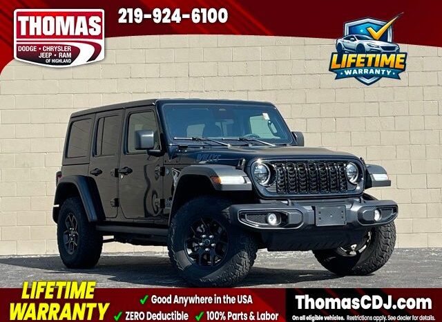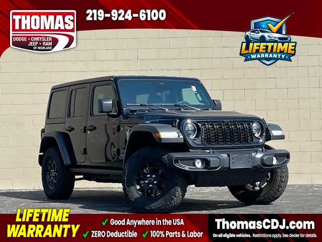 2025 Black Clearcoat Jeep WranglerOne Owner, HARD TOP CONVERTIBLE ROOF, 4-Wheel Drive Swing Gate Decal, 4.10 Rear Axle Ratio, 7 & 4 Pin Wiring Harness, 8 Speakers, Air Conditioning w/Auto Temperature Control, Air Filtering, Alloy wheels, Apple CarPlay/Android Auto, Auxiliary Switches, Black 3-Piece Hard Top, Black Grille, Brake assist, Class II Receiver Hitch, Compass, Convenience Group, Conventional Differential Front Axle, E-Locker Rear Axle, Electronic Stability Control, Emergency/Assistance Call, Front fog lights, Front LED Fog Lamps, Fully automatic headlights, Heated door mirrors, Heated Front Seats, Heated Steering Wheel, LED Premium Reflector Headlamps, Molded in Color Rubicon Highline Flare, Off-Road Plus Mode, Outside temperature display, ParkView Rear Back-Up Camera, Power door mirrors, Quick Order Package 29W Willys 4xe, Radio: Uconnect 5 w/12.3" Display, Rear Window Defroster, Rear Window Wiper/Washer, Remote Start System, Security system, Speed control, Sport Suspension, Traction control, Universal Garage Door Opener, Wheels: 20" x 8" Machined/Painted Gray, Willy's Suspension, Willys 4xe Hood Decal.LIFETIME WARRANTY FOREVER! On ALL eligible new & used vehicles - $0 Deductible Parts and Labor! - Valid Anywhere in the USA! - Can be Serviced at any Licensed Facility in the USA! - No Expiration Full Powertrain Coverage for Your Entire Ownership! * NO CATCH & NO COST TO YOU! * On All Eligible New and Used Vehicles * Only at ThomasDCJ.com.