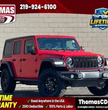 2025 Bright White Clearcoat Jeep WranglerOne Owner, HARD TOP CONVERTIBLE ROOF, 4-Wheel Drive Swing Gate Decal, 4.10 Rear Axle Ratio, 7 & 4 Pin Wiring Harness, 8 Speakers, 97 MPH Vehicle Max Speed Calibration, Air Conditioning w/Auto Temperature Control, Air Filtering, Alloy wheels, Apple CarPlay/Android Auto, Auxiliary Switches, Black 3-Piece Hard Top, Black Grille, Class II Receiver Hitch, Compass, Convenience Group, Conventional Differential Front Axle, E-Locker Rear Axle, Electronic Stability Control, Emergency/Assistance Call, Freedom Panel Storage Bag, Front fog lights, Front LED Fog Lamps, Fully automatic headlights, Heated door mirrors, Heated Front Seats, Heated Steering Wheel, LED Premium Reflector Headlamps, Molded in Color Rubicon Highline Flare, MOPAR All-Weather Floor Mats, Off-Road Plus Mode, ParkView Rear Back-Up Camera, Power door mirrors, Quick Order Package 29W Willys 4xe, Radio: Uconnect 5 w/12.3" Display, Rear Window Defroster, Rear Window Wiper/Washer, Remote Start System, Security system, Speed control, Sport Suspension, Traction control, Universal Garage Door Opener, Wheels: 20" x 8" Machined/Painted Gray, Willy's Suspension, Willys 4xe Hood Decal.LIFETIME WARRANTY FOREVER! On ALL eligible new & used vehicles - $0 Deductible Parts and Labor! - Valid Anywhere in the USA! - Can be Serviced at any Licensed Facility in the USA! - No Expiration Full Powertrain Coverage for Your Entire Ownership! * NO CATCH & NO COST TO YOU! * On All Eligible New and Used Vehicles * Only at ThomasDCJ.com.