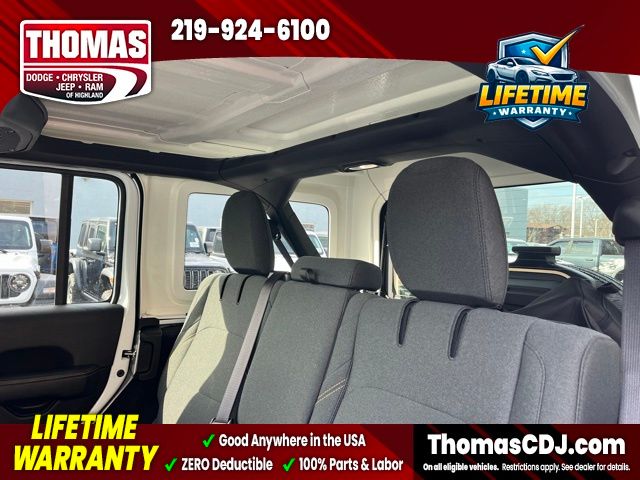 2025 Bright White Clearcoat Jeep WranglerIncludes SAFETY Pkg, One Owner, 3-Piece Hard Top Roof, 4G LTE Wi-Fi Hot Spot, 8 Speakers, Alloy wheels, Apple CarPlay/Android Auto, Auto High Beam Headlamp Control, Automatic temperature control, Blind Spot & Cross Path Detection, Body Color 3-Piece Hard Top, Freedom Panel Storage Bag, Front dual zone A/C, Front fog lights, Fully automatic headlights, Google Android Auto, Heated door mirrors, Heated front seats, Heated steering wheel, Integrated Voice Command w/Bluetooth, Outside temperature display, ParkSense Rear Park Assist System, ParkView Rear Back-Up Camera, Power door mirrors, Radio: Uconnect 5 w/12.3" Display, Rear Window Defroster, Rear Window Wiper/Washer, Safety Group, Security system, Speed control, Sport Suspension, Traction control, Wheels: 20" x 8" Painted Black Aluminum.LIFETIME WARRANTY FOREVER! On ALL eligible new & used vehicles - $0 Deductible Parts and Labor! - Valid Anywhere in the USA! - Can be Serviced at any Licensed Facility in the USA! - No Expiration Full Powertrain Coverage for Your Entire Ownership! * NO CATCH & NO COST TO YOU! * On All Eligible New and Used Vehicles * Only at ThomasDCJ.com.