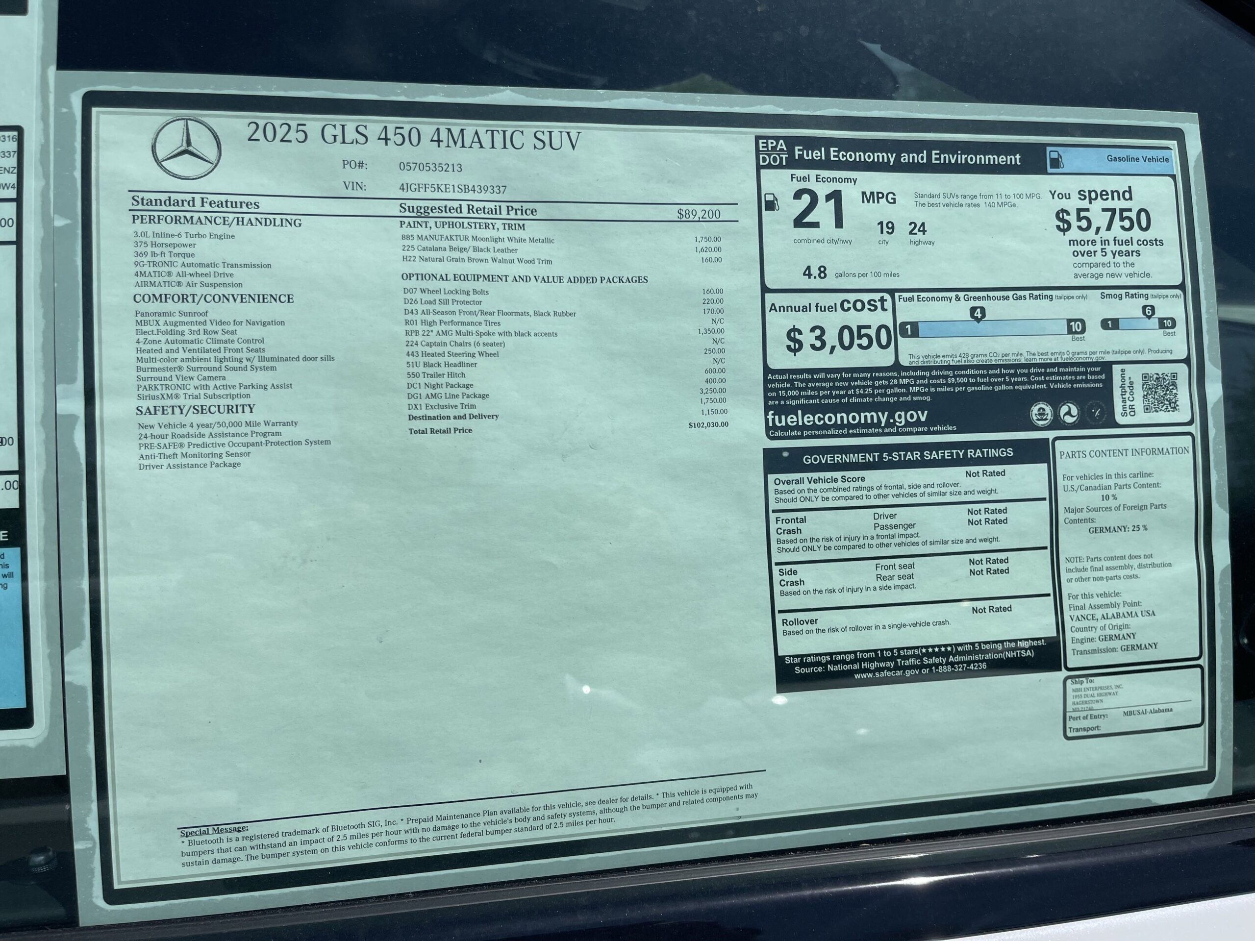 Delivers 24 Highway MPG and 19 City MPG! This Mercedes-Benz GLS delivers a Intercooled Turbo Gas/Electric I-6 3.0 L/183 engine powering this Automatic transmission. HEATED STEERING WHEEL, WHEELS: 22 AMG MULTI-SPOKE ALLOY W/BLACK ACCENTS -inc: Tires: 285/45R22 Front & 325/40R22 Rear, Collapsible Spare Tire, Performance Tires, WHEEL LOCKING BOLTS.* This Mercedes-Benz GLS Features the Following Options *NIGHT PACKAGE -inc: High-Gloss Black Elements, high-gloss black front apron trim strip, high-gloss black simulated underguard, high-gloss black rear apron trim strip, high-gloss black side mirrors and high-gloss black window line and beltline trim strips, Matte Black Roof Rails, Dark Chrome Grille w/4 Slats, EXCLUSIVE TRIM PACKAGE -inc: Active Multicontour Front Seats w/Massage Feature, Heated Rear Seats, Rapid Heating Front Seats , TRAILER HITCH -inc: Increased Towing Capacity, NATURAL GRAIN BROWN WALNUT WOOD TRIM, MANUFAKTUR MOONLIGHT WHITE METALLIC, LOAD SILL GUARD, CATALANA BEIGE/BLACK, LEATHER UPHOLSTERY, AMG LINE EXTERIOR -inc: AMG Rear Apron, black diffuser-look insert and chrome trim strip, AMG Side Skirts in Body Color, Large Front Brake System, larger brake discs at the front axle, AMG Brushed Stainless Steel Sports Pedals, black rubber studs, AMG Floor Mats, AMG Sport 3-Twin-Spoke Steering Wheel, flattened bottom, embossed nappa leather, silver chrome shift paddles, gloss black and silver spokes and touch control panels, Front and Rear Flared Wheel Arches in Body Color, AMG Bodystyling, AMG front apron w/air outlets in the wheel arch linings, ALL-SEASON FRONT & REAR FLOORMATS, Window Grid Diversity Antenna.*Visit our website - www.drivemb.com **Contact us: Fill out the contact form or call us at 301-281-6979 OR visit our website for Express Purchase or Express Test Drive.