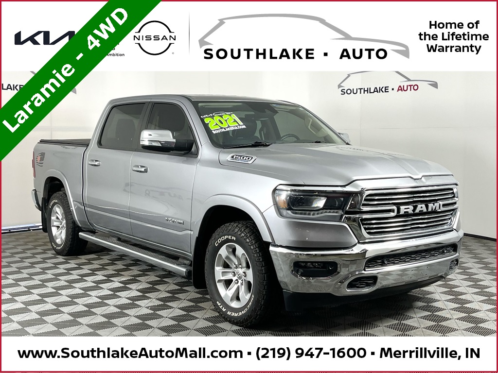 Recent Arrival! 2021 Ram 1500 Laramie 4WD Billet Silver Metallic Clearcoat Lifetime Warranty!, Local Trade, 4X4, Air Conditioning, Auto High Beam Headlamp Control, Foam Bottle Insert (Door Trim Panel), Heated front seats, Laramie Level A Equipment Group, Overhead console, ParkSense Front/Rear Park Assist w/Stop, Quick Order Package 27H Laramie, Radio: Uconnect 4 w/8.4" Display, Rain Sensitive Windshield Wipers, Rear 60/40 Folding Split Recline Seat, Remote Tailgate Release, Speed control, Tailgate Ajar Warning Lamp, Wheels: 18" x 8" Aluminum Base Painted.Odometer is 28029 miles below market average!Why we use market based pricing?We believe that today's used car buyers search the Internet to find the best value on the vehicle they want. Each search returns dozens, if not hundreds, of similar vehicles in their area to consider. Customers shorten this to a manageable list by ranking vehicles with the best price and mileage at the top. Because of this we utilize a software tool that show us where our inventory ranks on popular car shopping sites when searched and gives us the information we need to immediately adjust our prices and drive customers to our lot. We believe that Market Based Pricing aligns our cars best with what the consumer is looking for.Proudly serving Matteson IL, 60443, Park Forest IL, 60466, Richton Park IL, 60471, Chicago Heights IL, 60411, 60412, 60422, Portage IN, 46368, Merrillville IN, 46410, Crown Point IN, 46307, Lake Station IN, 46303, Chesterton IN, 46304, Hammond IN, 46320.
