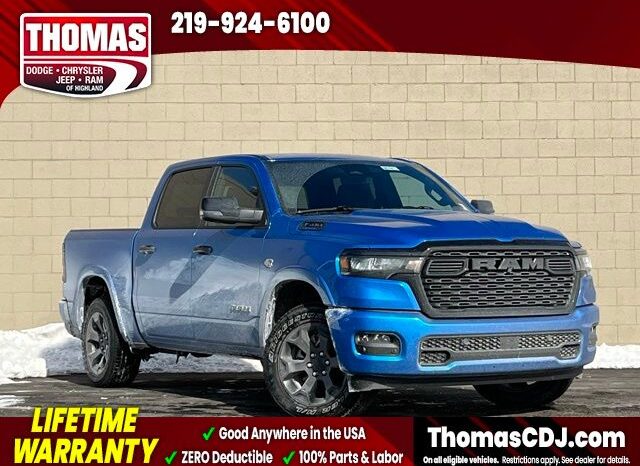 Our LIFETIME WARRANTY FOREVER is eligible on ALL new & preowned vehicles. $0 Deductible on Parts and Labor and valid at any Licensed Service Facility in the USA! - No Expiration & Full Powertrain Coverage for the entire ownership of your purchase all at NO COST to you. We are commission free and strive to provide you with an exceptional experience. All price quotes do not include Tax, Title, License or 199.00 Documentary fee.2026 Ram 1500 Big Horn/Lone Star Hydro Blue Pearlcoat HEMI 5.7L V8 Multi Displacement VVT eTorque 16/20 City/Highway MPG 4D Crew Cab 4WDCome see the difference at Thomas Chrysler Dodge Jeep Ram of Highland, IN. Our number one goal is your complete satisfaction! Call us at 219-924-6100. Price includes all rebates, must live in MidWest busniess center, may have to finance through Chrysler.$3500 - 2026 National Retail Bonus Cash . Exp. 04/30/2026 $500 - 2026 National 2026 Military Bonus Cash . Exp. 01/04/2027