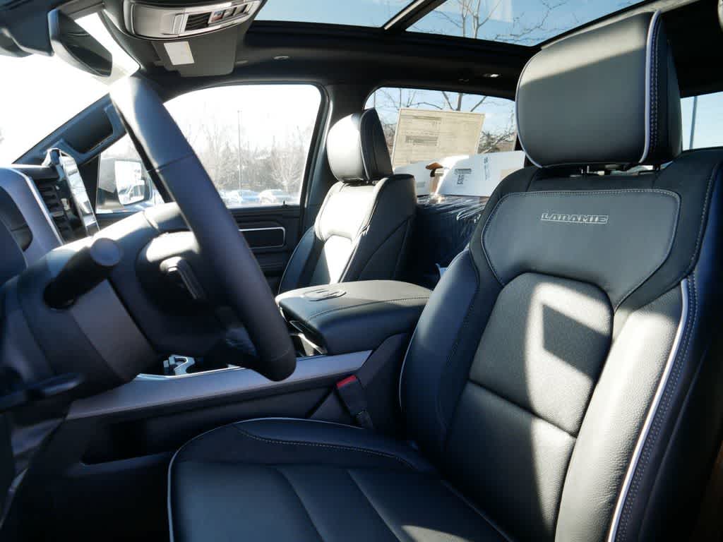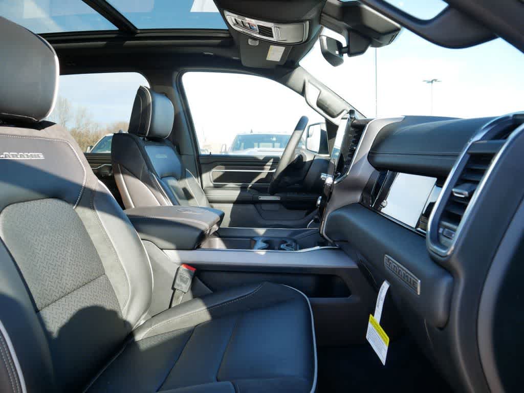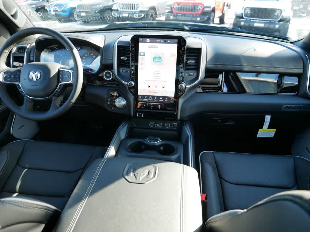 NIGHT EDITION Black Headlamp Bezels, Wheels: 22" x 9" Forged Aluminum, Tires: 285/45R22XL BSW All Season, Pirelli Brand Tires, Proximity Approach/Departure Lamps, Anti-Spin Differential Rear Axle, Accent Color Door Handles, Black Interior Accents, Body Color Front Bumper, Grille Surround 3 Black Texture 2 Black, Body Color Rear Bumper w/Step Pads, RAM Grille Badge - Black, Black Painted Exterior Mirrors Caps, Exterior Mirrors Approach Lamps, Accent Color Premium Power Mirrors, Sport Performance Hood, Black Exterior Truck Badging, Accent Color Tailgate Handle, Dual Exhaust w/Black Tips, Black Tail Lamp Bezels, LARAMIE LEVEL 2 EQUIPMENT GROUP Rain Sensitive Windshield Wipers, 14.4" Touchscreen Display, Radio: Uconnect 5 Nav w/14.4" Display, harman/kardon? 19 Speaker Premium Sound, Cluster 12" TFT Color Display, Power Tailgate, DUAL-PANE PANORAMIC SUNROOF LED Dome/Reading Lamp, Dome Dual LED Reading Lamp, BED UTILITY GROUP MOPAR Spray In Bedliner, MOPAR 4 Adjustable Cargo Tie-Down Hooks, MOPAR FRONT & REAR RUBBER FLOOR MATS, TRANSMISSION: 8-SPEED AUTOMATIC (8HP75) (STD), ENGINE: 3.0L I6 HURRICANE SO TWIN TURBO ESS (STD), BLACK, LEATHER TRIMMED BUCKET SEATS Bucket Seats, Rear 60/40 Folding Split Recline Seat, #1 Seat Foam Cushion, Center Console Parts Module, Heated Second Row Seats, Power Adjust 8-Way Driver Seat, Full Length Upgraded Floor Console.