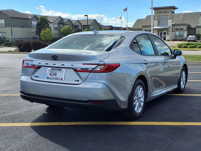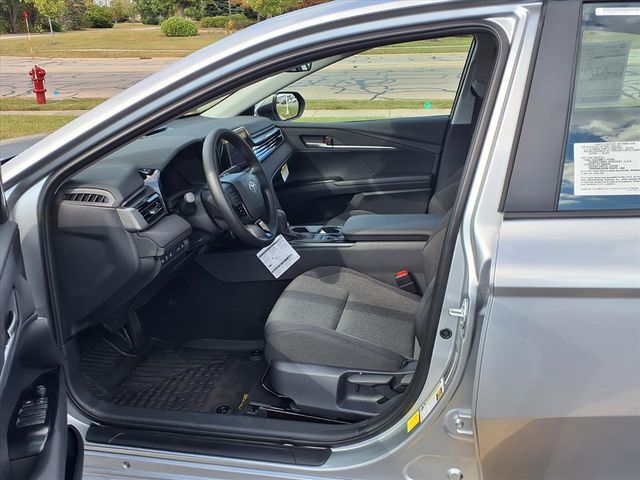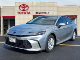 Black Cloth.Black Cloth, 4-Wheel Disc Brakes, 6 Speakers, ABS brakes, Air Conditioning, All Weather Floor Protection (TMS), Alloy wheels, AM/FM radio: SiriusXM, Apple CarPlay/Android Auto, Auto High-beam Headlights, Automatic temperature control, Black Badge Overlays (TMS), Brake assist, Bumpers: body-color, Delay-off headlights, Door Edge Guard (TMS), Driver door bin, Driver vanity mirror, Dual front impact airbags, Dual front side impact airbags, Electronic Stability Control, Emergency communication system: Safety Connect (5-year trial), Exterior Parking Camera Rear, Fabric Seat Trim, Four wheel independent suspension, Front anti-roll bar, Front Bucket Seats, Front Center Armrest, Front dual zone A/C, Front reading lights, Front Seats, Fully automatic headlights, Heated door mirrors, Heated Front Seats, Illuminated entry, Knee airbag, Low tire pressure warning, Mudguards (TMS), Occupant sensing airbag, Outside temperature display, Overhead airbag, Overhead console, Panic alarm, Passenger door bin, Passenger vanity mirror, Power door mirrors, Power steering, Power windows, Quick Charge Cables (TMS), Radio data system, Radio: 8" Toyota Audio Multimedia, Rear anti-roll bar, Rear seat center armrest, Rear window defroster, Remote keyless entry, Security system, Speed control, Speed-sensing steering, Split folding rear seat, Steering wheel mounted audio controls, Telescoping steering wheel, Tilt steering wheel, Traction control, Trip computer, Turn signal indicator mirrors, Variably intermittent wipers, Wheel Locks (TMS), and Wheels: 16" 10-Spoke Silver-Painted Alloy.Factory MSRP: $31,138 $1,711 off MSRP! Celestial Silver Metallic 2026 Toyota Camry 4D Sedan LE 2.5L 4-Cylinder 16V DOHC 53/50 City/Highway MPG eCVT FWDOnly at Romeoville Toyota do new Toyotas come with Warranty 4 LIFE a Lifetime Powertrain Warranty and ToyotaCare a maintenance plan that covers normal factory scheduled service for 2 years or 25,000 miles, whichever comes first, along with 24 hour Roadside Assistance for 2 years, unlimited mileage. Let us help you buy a vehicle and take advantage of your no cost Warranty 4 Life and ToyotaCare Only at Romeoville Toyota. Vehicle may be in transit. Equipement and pricing may change on all transit vehicles. Contact Romeoville Toyota to confirm availability.