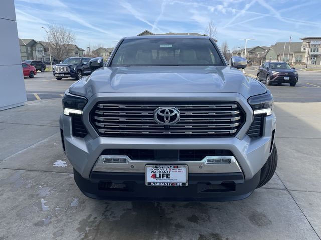 4WD.Limited Package, 4WD, 3.583 Axle Ratio, 4-Wheel Disc Brakes, 9 Speakers, ABS brakes, Air Conditioning, All Weather Floor Liners, Alloy wheels, AM/FM radio: SiriusXM, Anti-whiplash front head restraints, Apple CarPlay/Android Auto, Auto High-beam Headlights, Auto-dimming Rear-View mirror, Automatic temperature control, Brake assist, Bumpers: body-color, Chrome wheels, Door Edge Guard, Driver door bin, Driver vanity mirror, Dual front impact airbags, Dual front side impact airbags, Electronic Stability Control, Emergency communication system: Safety Connect (up to 10-year trial subscription), Exterior Parking Camera Rear, Four wheel independent suspension, Front anti-roll bar, Front Bucket Seats, Front Center Armrest, Front dual zone A/C, Front fog lights, Front reading lights, Fully automatic headlights, Garage door transmitter: HomeLink, Heads-Up Display, Heated and Ventilated Front Bucket Seats, Heated door mirrors, Heated front seats, Heated steering wheel, Illuminated entry, JBL Premium Audio, Knee airbag, Leather Shift Knob, Leather steering wheel, Low tire pressure warning, Navigation system: Drive Connect Cloud Navigation (1-year trial subscription), Occupant sensing airbag, Outside temperature display, Overhead airbag, Overhead console, Panic alarm, Passenger door bin, Passenger vanity mirror, Power door mirrors, Power driver seat, Power moonroof, Power passenger seat, Power steering, Power windows, Radio: 14" Toyota Audio Multimedia, Rear step bumper, Rear window defroster, Remote keyless entry, Security system, SofTex Seat Trim, Speed control, Speed-sensing steering, Split folding rear seat, Spray-on Bed Liner, Steering wheel mounted audio controls, Tachometer, Telescoping steering wheel, Tilt steering wheel, Traction control, Trip computer, Turn signal indicator mirrors, Variably intermittent wipers, Ventilated front seats, and Wheels: 18" Chrome-Finished Alloy.Factory MSRP: $56,243 Recent Arrival! Celestial Silver Metallic 2026 Toyota Tacoma 4D Double Cab Limited 2.4L 4-Cylinder 20/23 City/Highway MPG 8-Speed Automatic 4WDOnly at Romeoville Toyota do new Toyotas come with Warranty 4 LIFE a Lifetime Powertrain Warranty and ToyotaCare a maintenance plan that covers normal factory scheduled service for 2 years or 25,000 miles, whichever comes first, along with 24 hour Roadside Assistance for 2 years, unlimited mileage. Let us help you buy a vehicle and take advantage of your no cost Warranty 4 Life and ToyotaCare Only at Romeoville Toyota. Vehicle may be in transit. Equipement and pricing may change on all transit vehicles. Contact Romeoville Toyota to confirm availability.